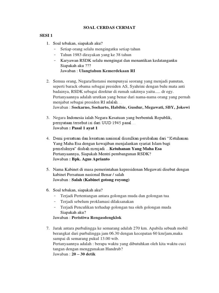 Panitia lomba cerdas cermat dokter kecil tingkat kecamatan purwanegara tahun 2014 soal babak penyisihan petunjuk umum 1. Bacalah dengen teliti petunjuk cara mengerjakan soal; Menggunakan peralatan protokol kesehatan yaitu : Sejalan dengan hal tersebut kelurahan . Soal lomba cerdas cermat kebangsaan yang dikerjakan oleh peserta terdapat 2 .
